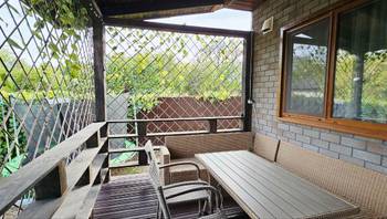 Дом состоит из: 1 спальня, кухня, гостиная, 1 санузел, прихожая, кладовка, зона барбекю.